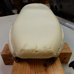 New seat foam - (the creamy filling) I found a quality one with the correct pan ridges molded into its bottom side from ClassicBritishSpares. (The ridges help secure the foam from shifting around on the pan)